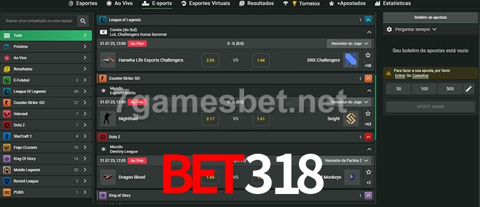 A aposta Bet318 oferece aos jogadores a experiência mais conveniente de apostas em eSports!